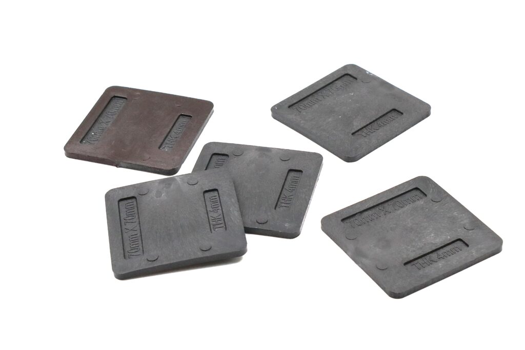 Durable 70×70 mm levelling shims made from high-strength black polypropylene (PP), ideal for precise alignment of heavy components. Corrosion-resistant and impact-proof, suitable for precast concrete, facade installation, and steel fabrication.